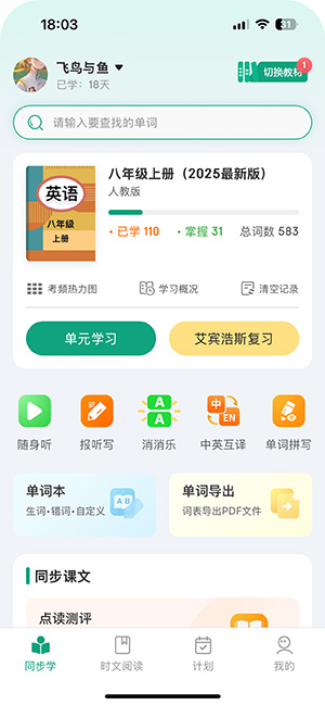 • 专业语音评测,跟读即时反馈,突破口语与听力。